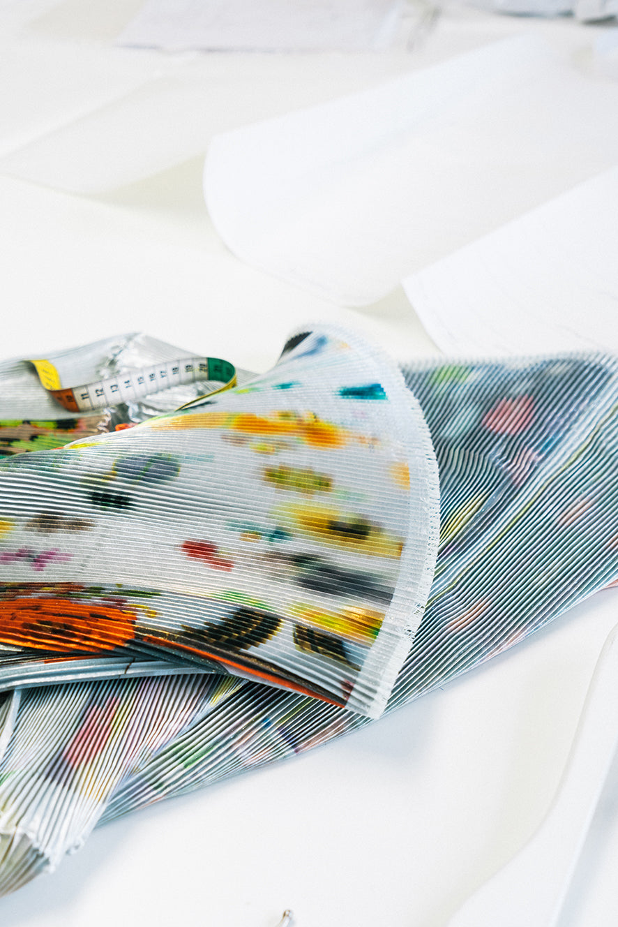 With a combination of unique in-house designed prints and innovative pleating techniques, she creates a look that cannot be replicated. Giving ancient techniques a contemporary and